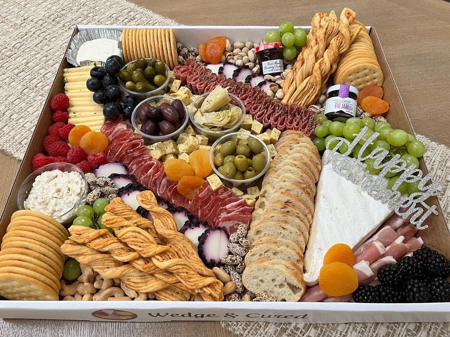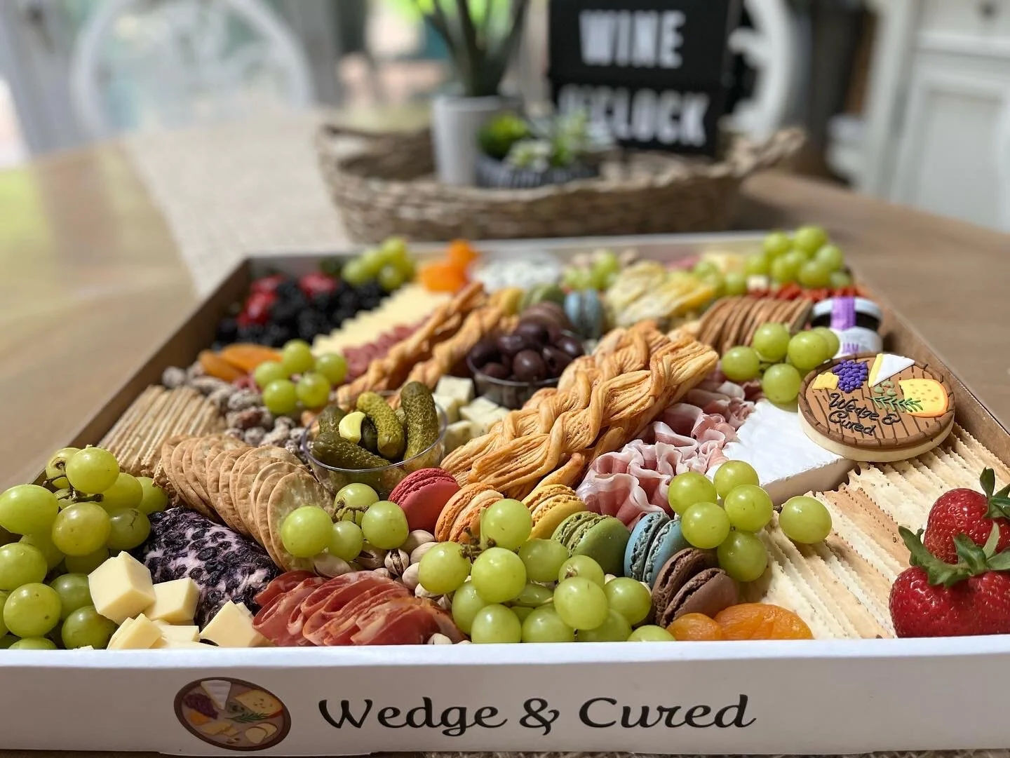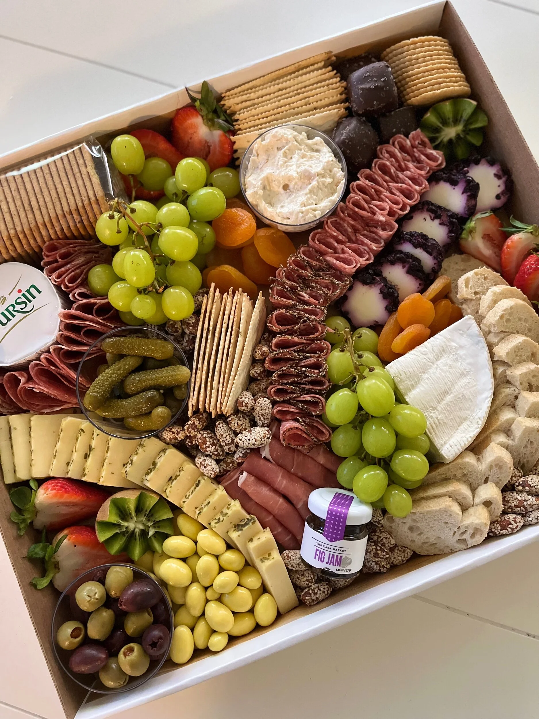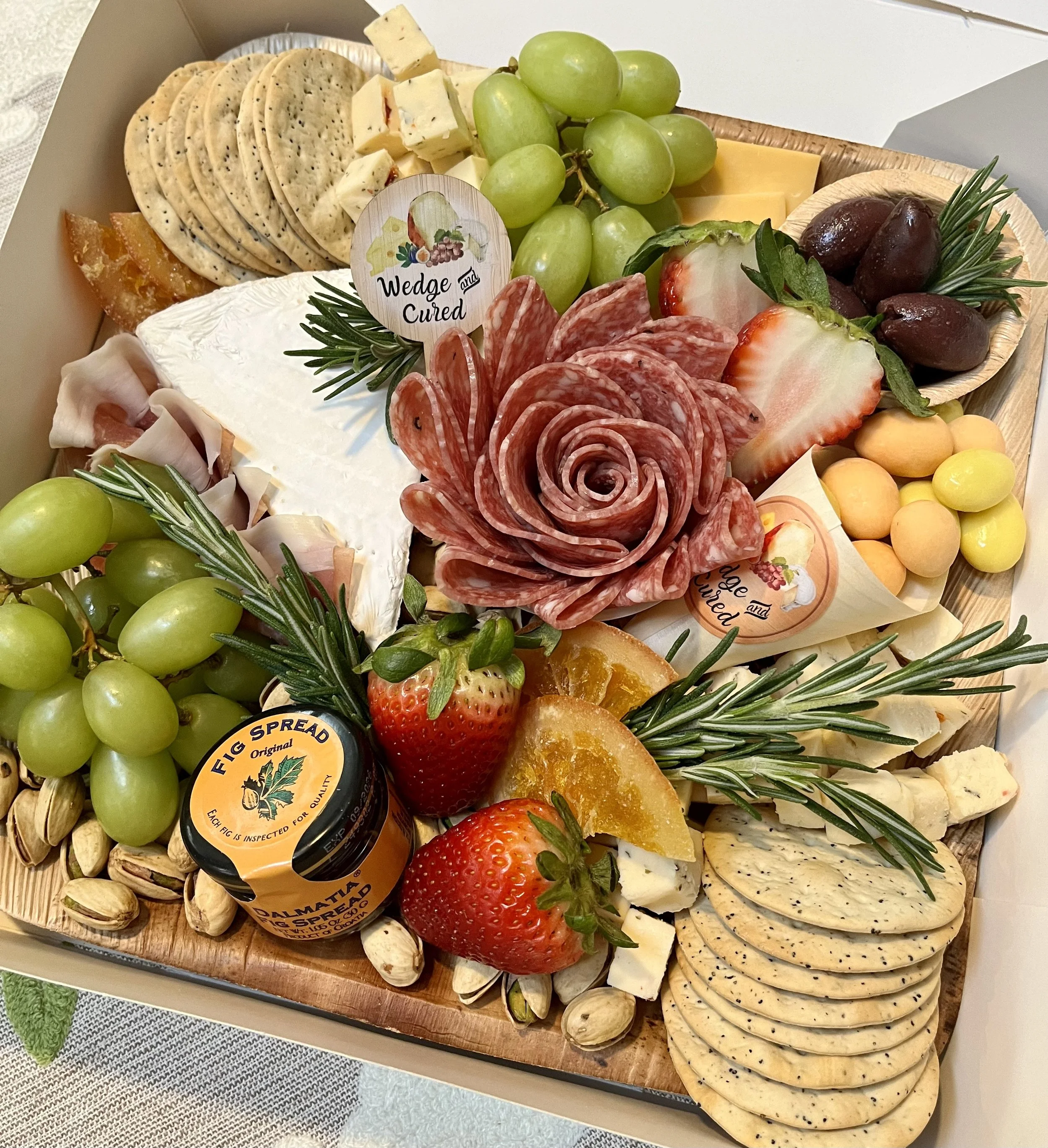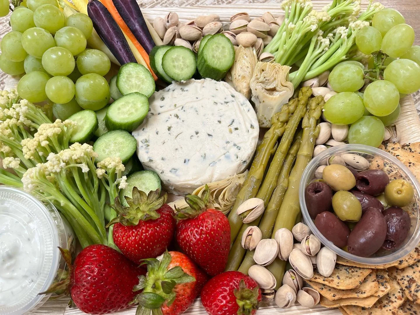 Closed Sundays All boards include crackers, cheese knives, & tongs Charcuterie cups - sold by the dozen $96.00 Large Charcuterie Cups (minimum order 4 or more) $12.00 Crudités (aka veggies) $80.00 Petite, serves 2-4 $60.00 Small, serves 4-8 $90.00 Medium, serves 8-12 $170.00 Large, serves 12-18 $225.00 Personal Grazing Box-min. order 4 $16.00 VEGAN-Petite, serves 4 $85.00 Gift Card from $50.00 Please tell me more about grazing tables! Name * First Name Last Name Amount of guests * Date of Event * MM DD YYYY Tell me more about your event * Phone * (###) ### #### Email * Thanks! We’ll be in touch shortly :)